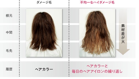 ※ダメージ毛と不均一なハイダメージ毛のイメージ画像