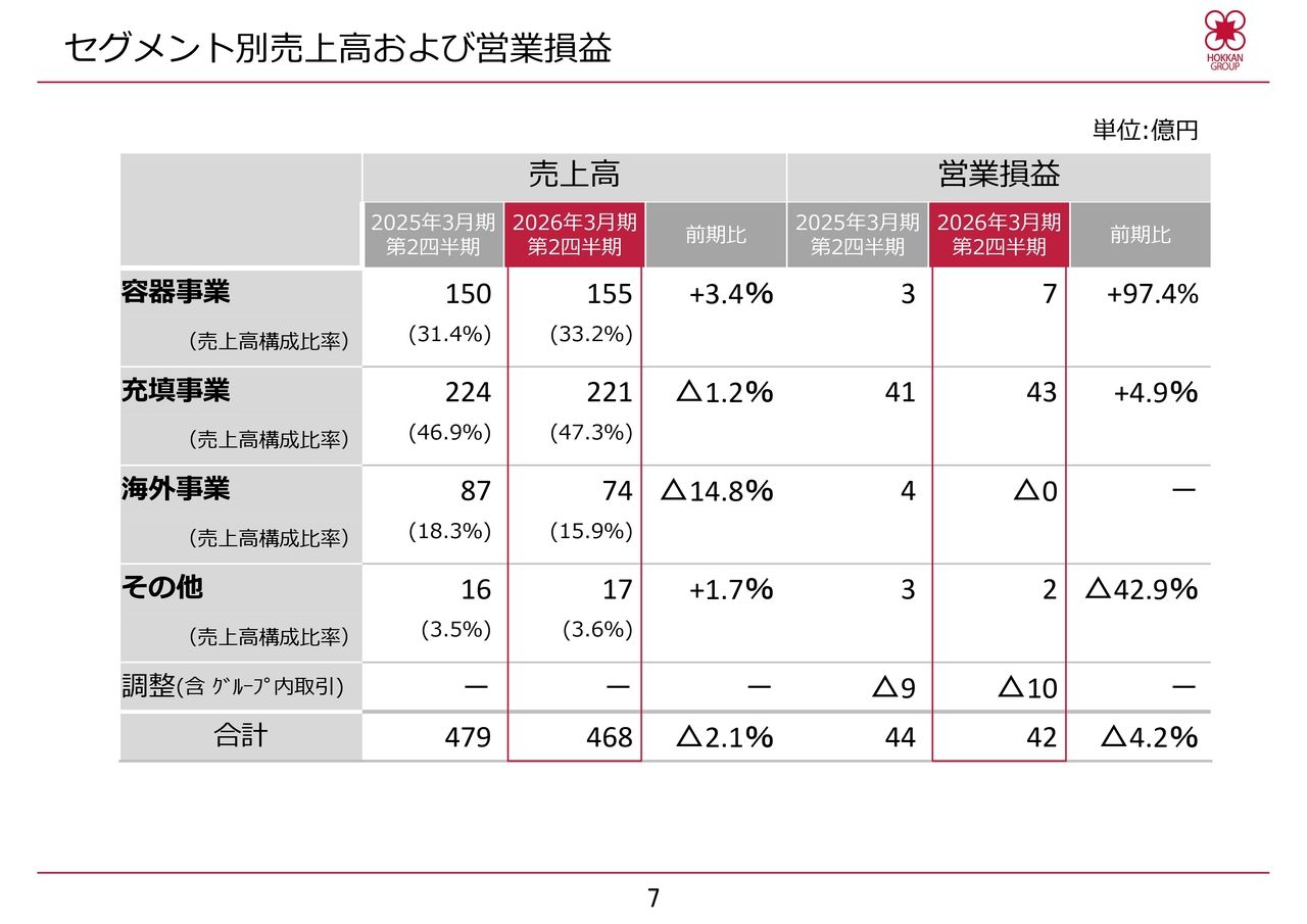 セグメント別の売上高と営業損益のご説明は以上です。
