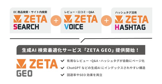 CX向上生成AIソリューションの「ZETA CXシリーズ」を提供するCX改善のリーディングカンパニーであるZETA株式会社(本社:東京都世田谷区、以下ZETA)は、ECサイトを生成AI検索に最適化する、いわゆる「GEO (Generative Engine Optimization)」サービスの提供を開始したことをご報告いたします。