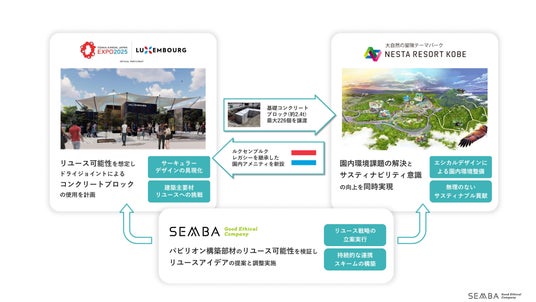 大阪・関西万博のルクセンブルクパビリオンの企画・実施機関である2025 大阪万博ルクセンブルク経済利益団体(GIE)と株式会社ネスタリゾート神戸は、株式会社船場と連携し、パビリオンの基礎コンクリートブロックの日本国内リユースに挑戦することに合意し覚書に調印しました。
