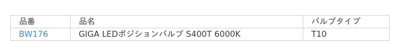 - ポジションバルブ(4000K):GIGA LEDポジションバルブ S300T ST LINE(2020年10月)