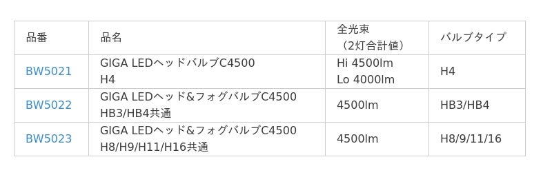 - 旧エントリーモデル:GIGA LEDヘッドバルブ C3600(2021年10月)