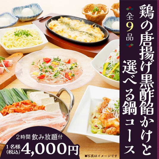 ●「鶏の唐揚げ黒酢餡かけと選べる鍋コース」全9品