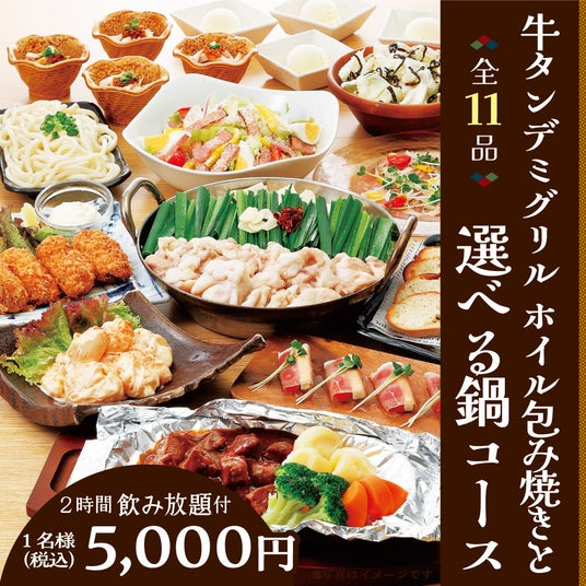●「牛タンデミグリルホイル包み焼きと選べる鍋コース」全11品