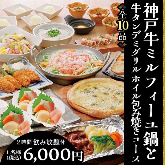 ●「神戸牛ミルフィーユ鍋と牛タンデミグリルホイル包み焼きコース」全10品