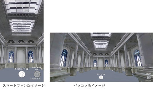 お持ちのスマートフォンやタブレット、パソコンを使って、明治古都館内部の玄関ホール・中央ホールを無料で疑似観覧いただけます。詳細は下記のサイトをご覧ください。